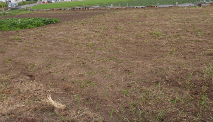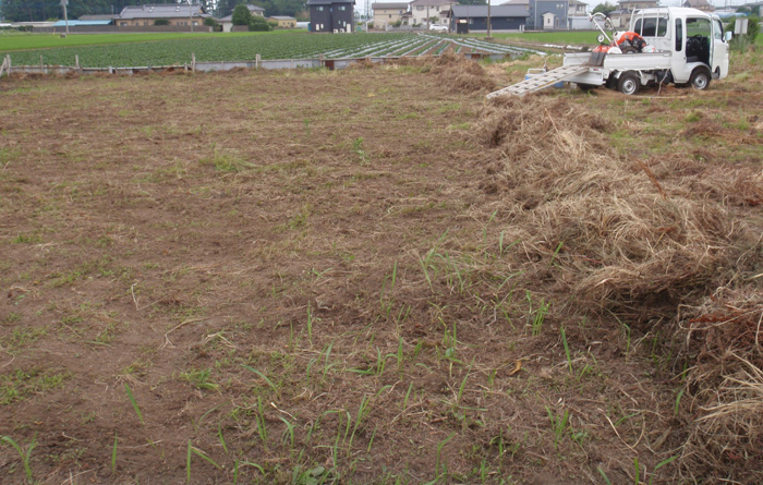 これから、耕運機で残った草の根を