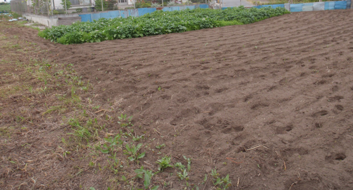 ジャガイモは、荒地でも大丈夫と言うので4月にキタアカリの種芋を10キロ・・・